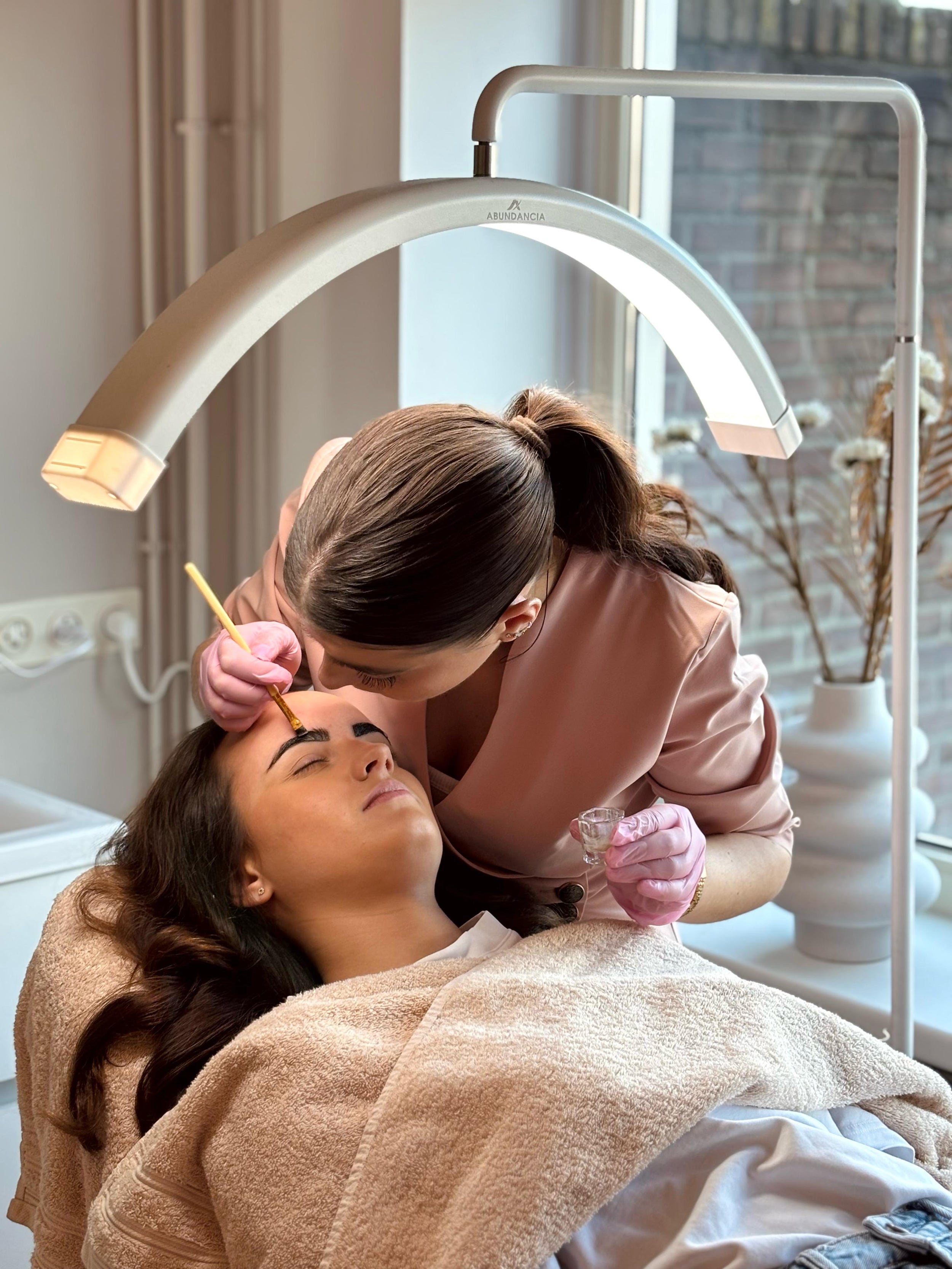 Henna eyebrow tinting involves applying a paste made from henna powder and other natural ingredients onto the eyebrows. The dye stains the skin and the eyebrow hairs, giving them a fuller and more defined appearance.